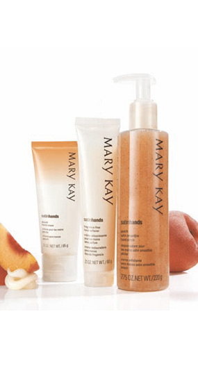 - Los productos del Set Manos de Seda Peach Satin Hands® trabajan en conjunto para mantener las manos irresistiblemente tersas y suaves, dejando una fabulosa fragancia a durazno.